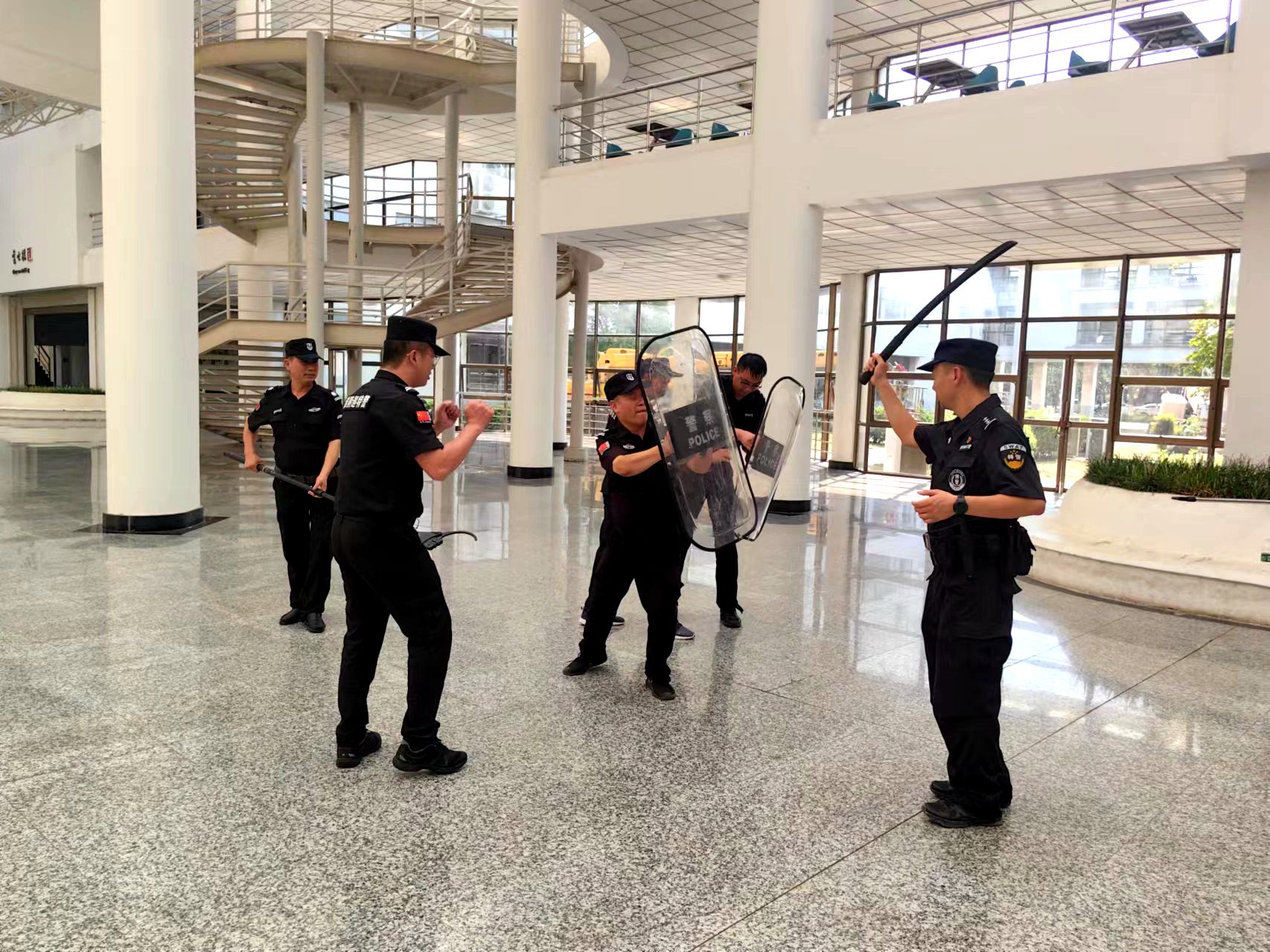 8月21日,保卫处邀请淮安市公安局淮阴淮阴分局巡特警大队夏警官现场讲解防范应对校园突发性事件的基本技巧,在培训中,详细传授了警棍、盾牌、防暴叉等器材的使用方法。通过互动式教学演示,重点讲解了应急处突过程中人员分工配合、站位等动作要领、技巧以及注意事项。同时,组织安保人员进行防暴器材实操演练,对出现的问题现场给予纠正。