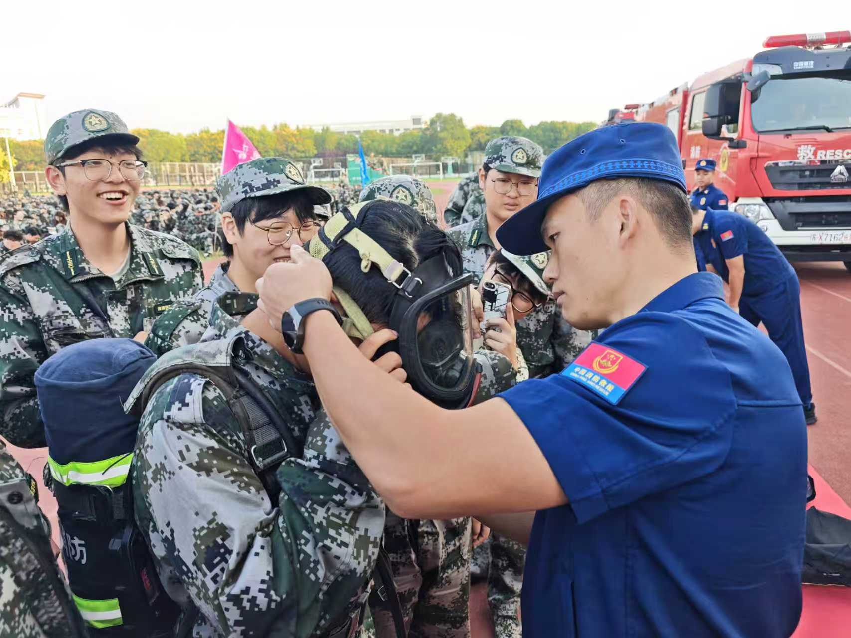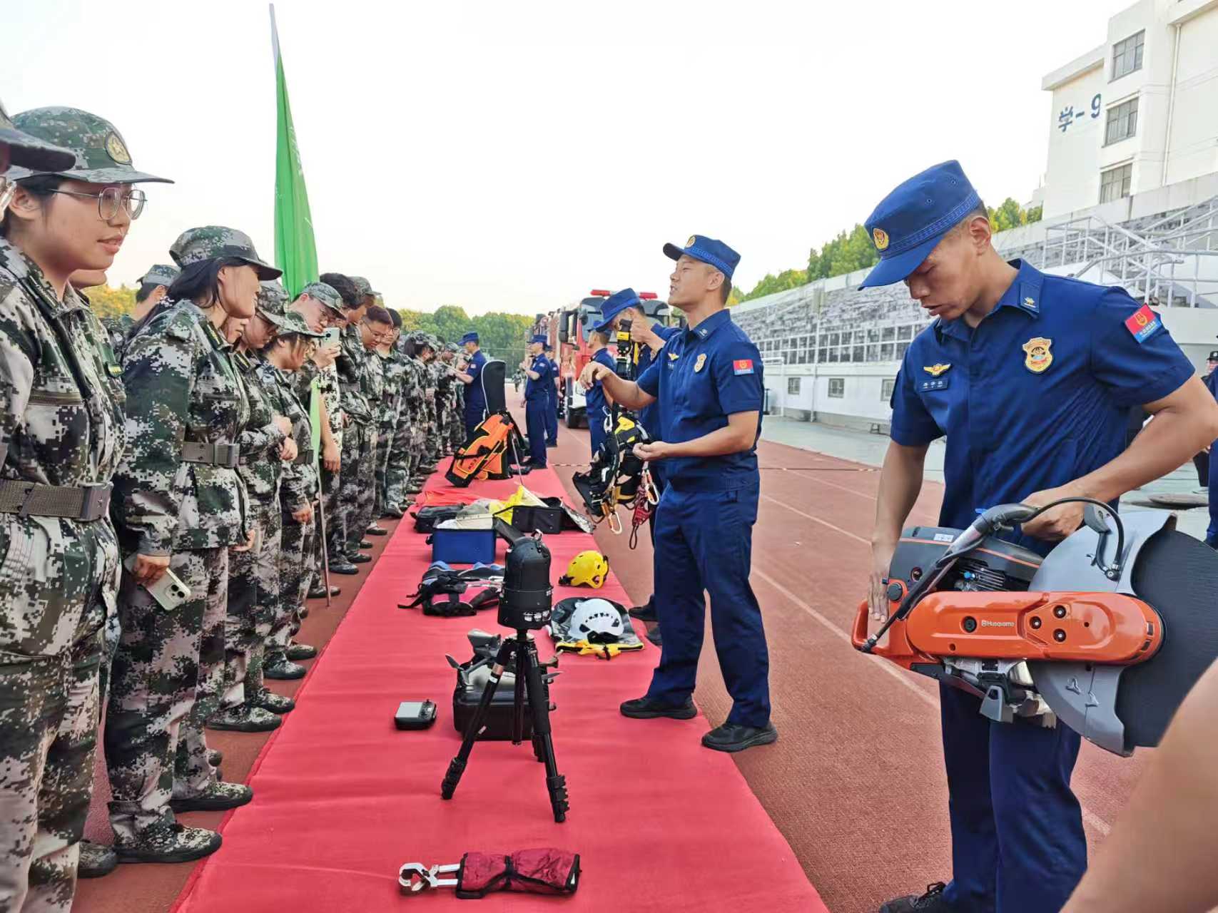 随后,消防员们为新生们进行了系统的消防装备展示。重点演示了液压破拆工具组、热成像仪等先进救援装备在实际救援中的操作流程。在互动体验环节,部分新生在消防员的一对一指导下,亲身体验了消防作战装备的使用方法,通过这种沉浸式体验,新生们深刻体会到了消防员在高温浓烟环境中坚守岗位的艰辛与付出。
